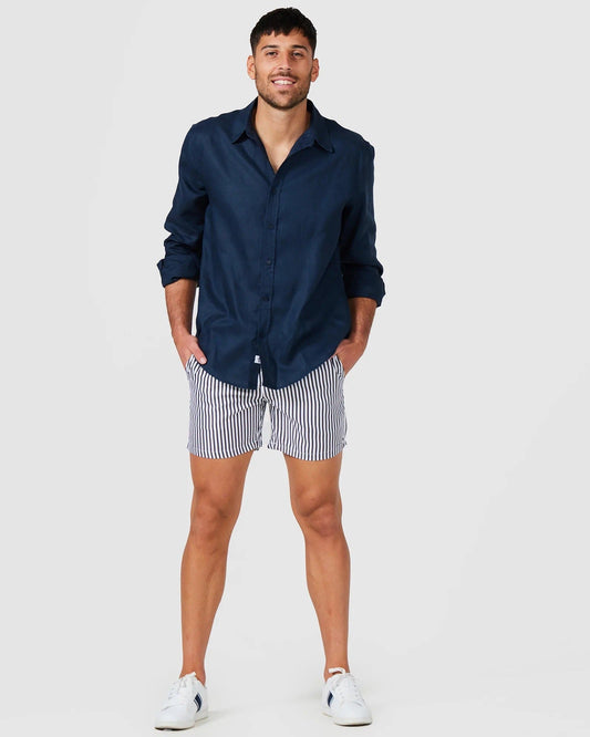 Vacay Swimwear Linen Shirt - Navy