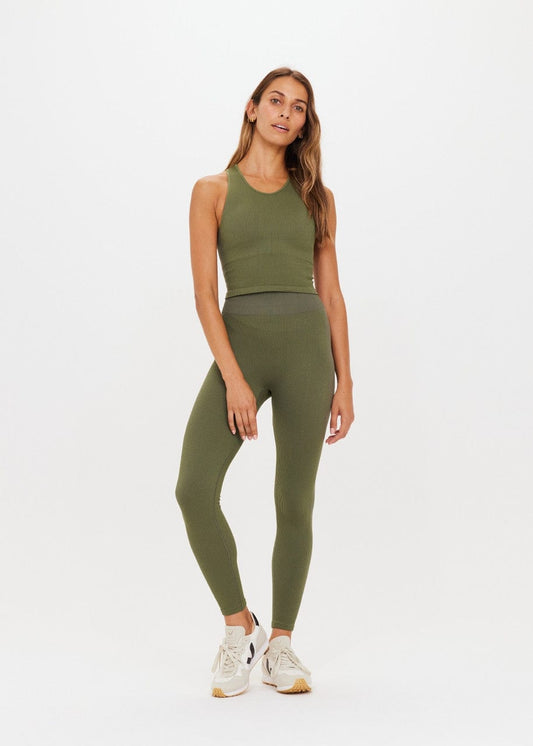 The Upside Ribbed Seamless 25in Midi Pant - Olive