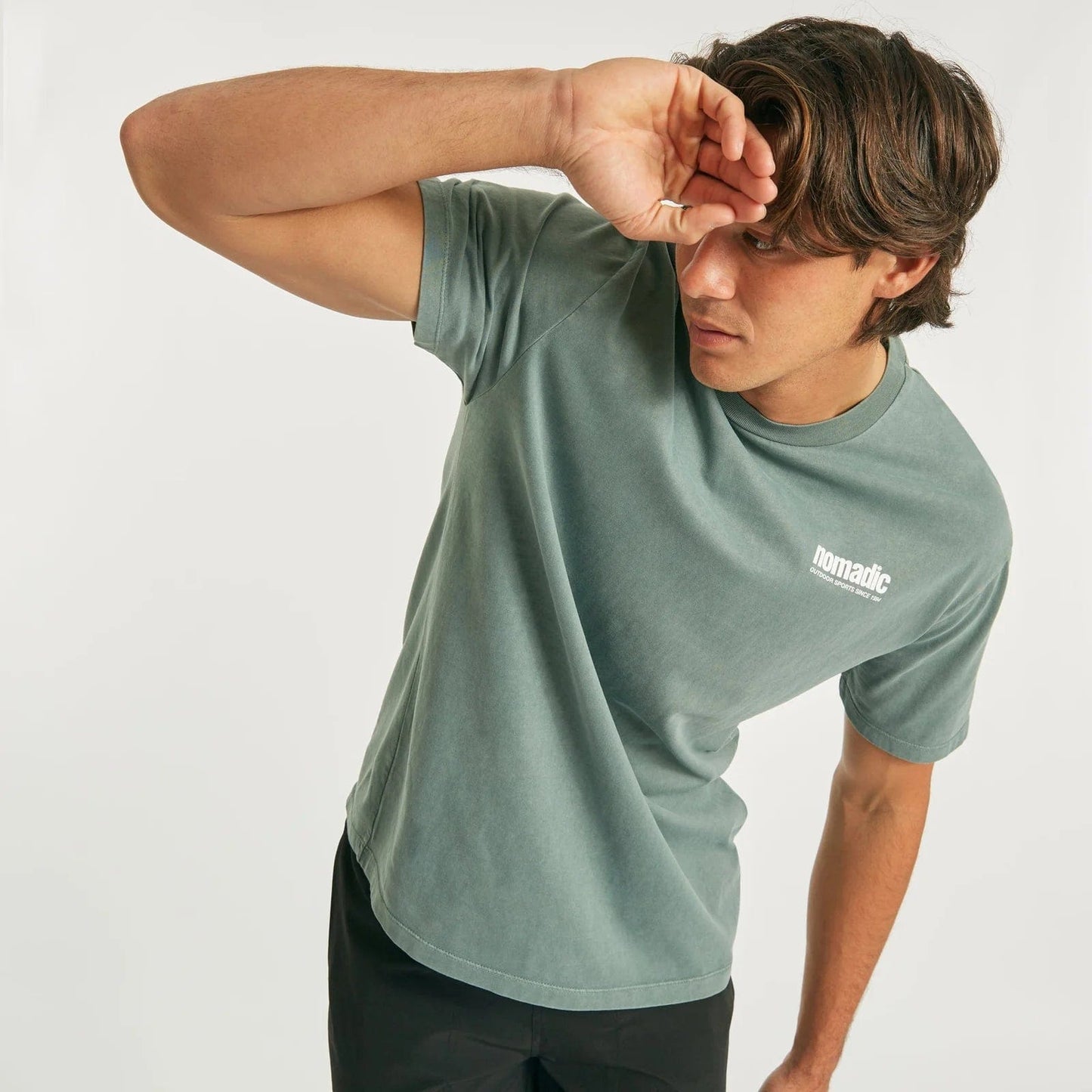 Nomadic Paradise's contemporary take on the golden era of outdoor aesthetics, the Kooyong Relaxed Tee in pigment sea gives nods to surfing, skating and street culture - basically the best of all worlds. Created for everyday wear-ability and laid-back adventure.
